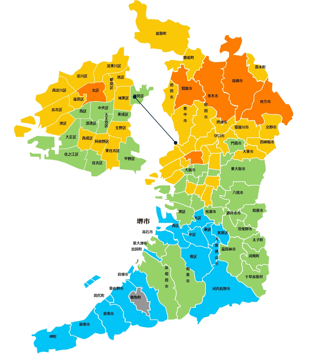 大阪西区|大阪大正区|大阪天王寺区|大阪浪速区|大阪東成区| 大阪城東区|大阪阿倍野区|大阪住吉区|大阪東住吉区|大阪西成区| 大阪鶴見区|大阪住之江区|大阪平野区|大阪中央区|八尾市|柏原市| 門真市|東大阪市|大阪堺市堺区|岸和田市|泉大津市|富田林市| 松原市|大阪和泉市|羽曳野市|藤井寺市|大阪太子町|河南町| 千早赤阪村 |